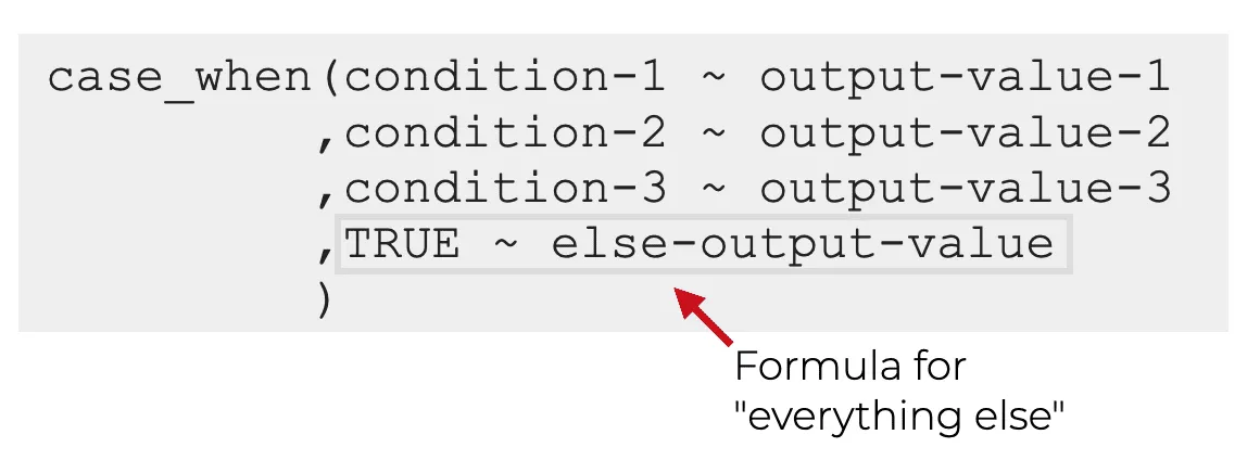 case_when()case_when() with mutate()| country | continent | year | pop | cont_code |